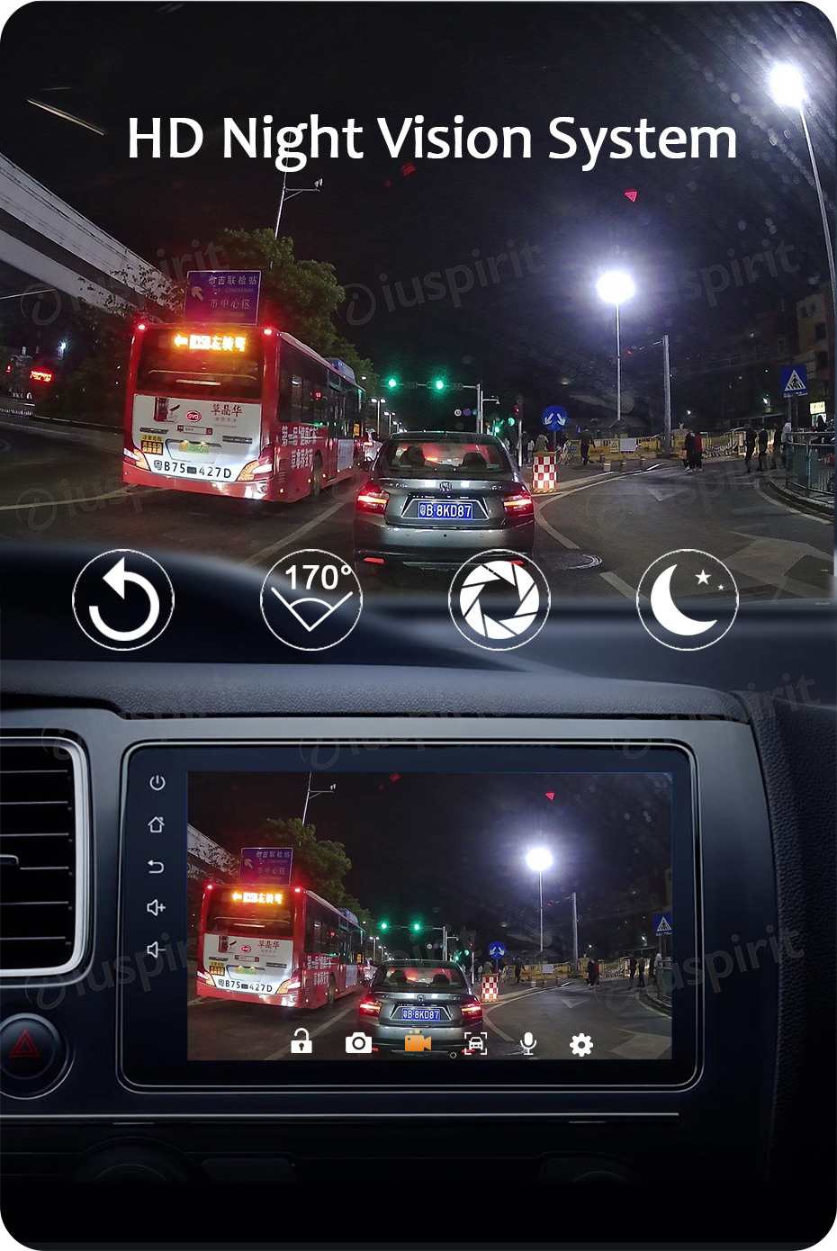 ● ADAS funzioni: di avviso di collisione (messaggio vocale), corsia departure warning (messaggio vocale), veicolo departure warning (messaggio vocale), distanza del veicolo display (display digitale sul registratore interfaccia), visualizzazione della velocità (registratore interfaccia display Digitale)